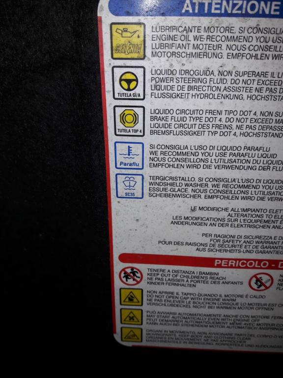 A teraz ciekawa sprawa. Pod maską jest naklejka Seleni z płynami do auta. Wcześniej się jej nie przyglądałem, ale dzisiaj zauważyłem że jest napisane żeby używać tutelę GI/A!