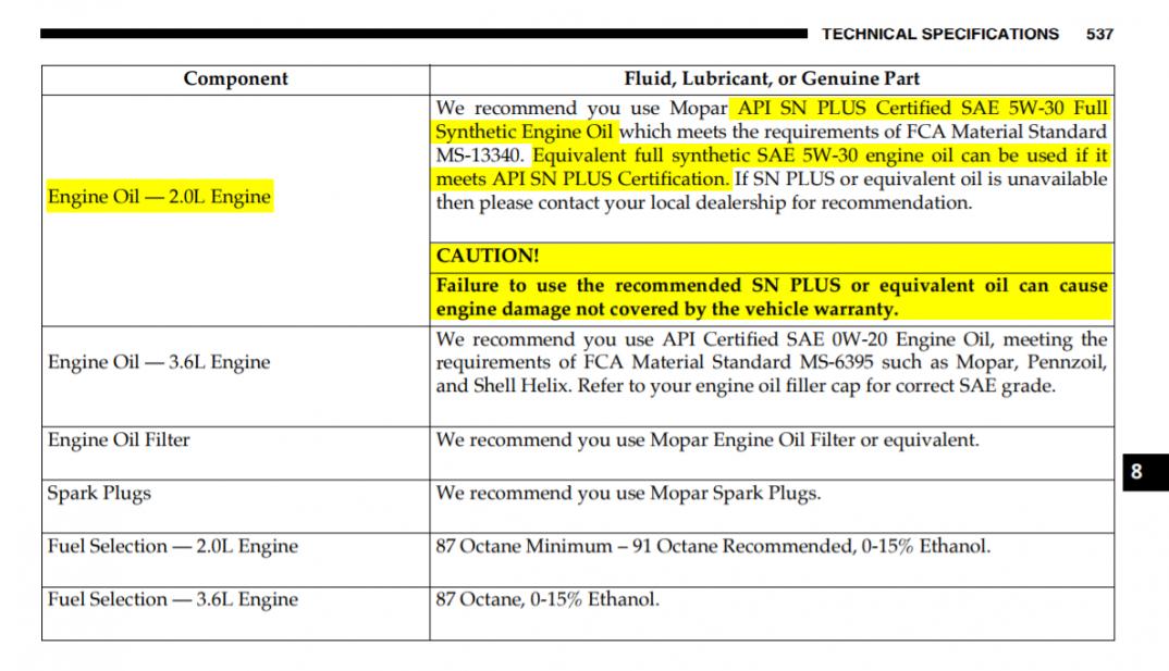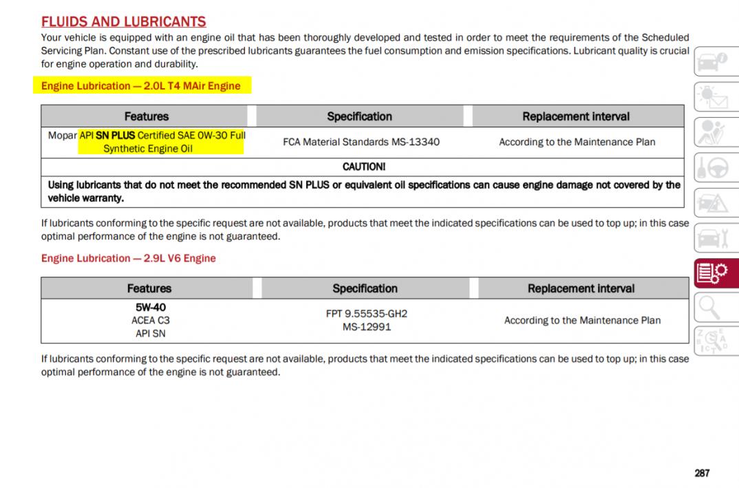 Moim zdaniem jest jak każdy benzynowy silnik turbodoładowany z bezpośrednim wtryskiem paliwa. Olej powinien mieć obniżoną zawartość związków wapnia i spełniać API SN Plus. Włoskie zalecenia w ogóle tego nie uwzględniają. Amerykańska dywizja FCA prosi o 5w30 API SN Plus dla bliźniaczego silnika w Jeepie Wranglerze.