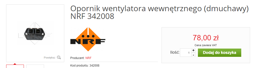Zakupiłem NRF 342008, gdyż wszystkie znaki na niebie wskazują, że to właśnie rezystor wentylatora chłodnicy uległ uszkodzeniu w mojej Belli.