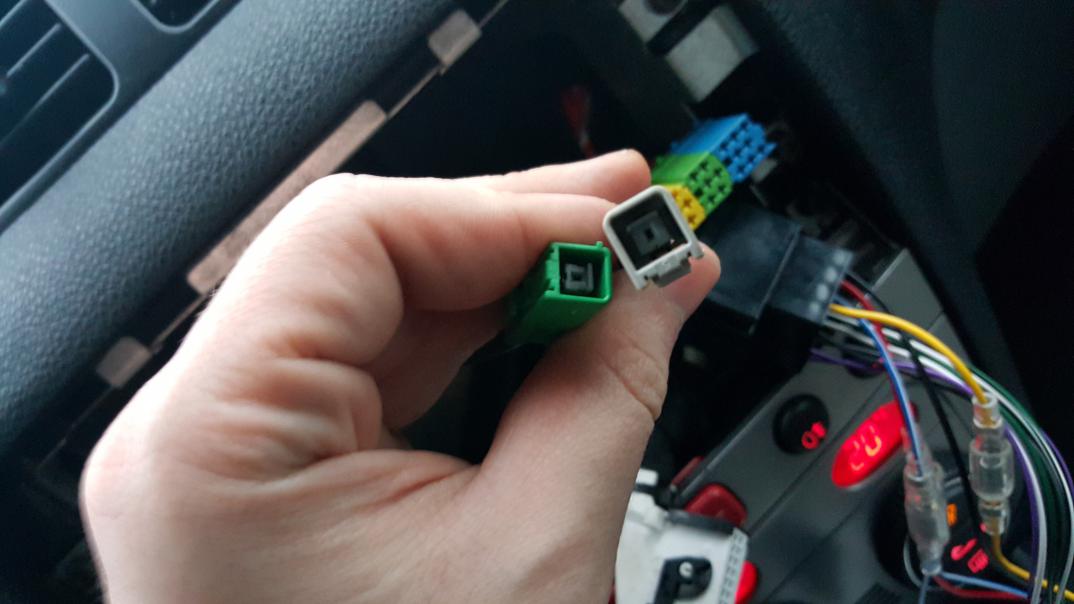 rozebrałem kierownicę, nie znalazłem wolnych wpięć (slotów), zdemontowałem radio i zauważyłem, że w moja kolorowa kostka wygląda tak ja ta CLICK HERE.