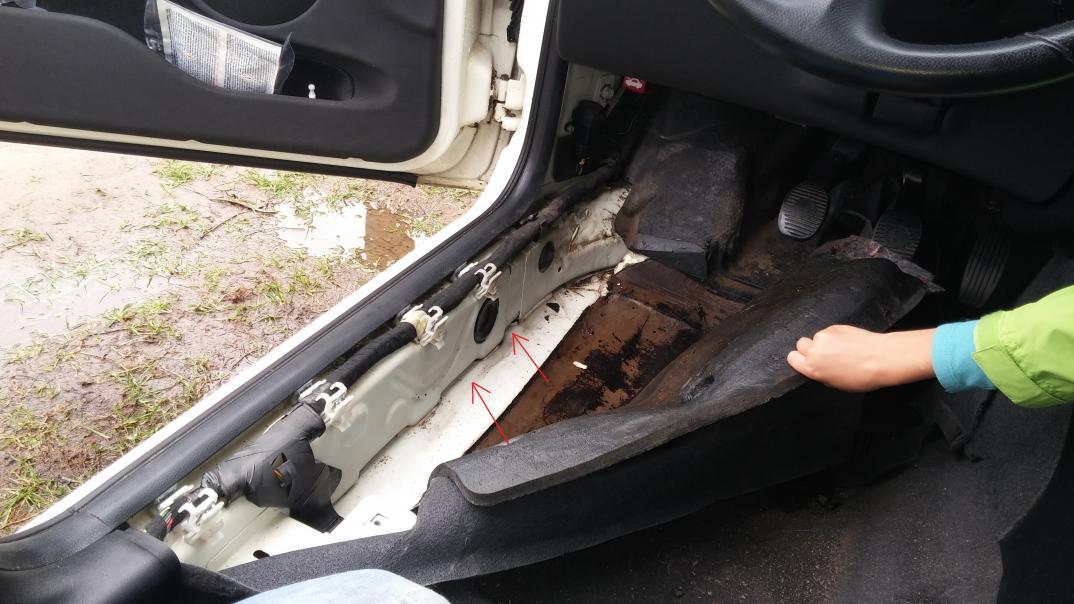 Czy oby nie masz oryginalnej fabrycznej maty ( tej białej ) zdartej, ze woda się dostaje ? Te maty miały za zadanie izolować wodę która przez parapet drzwi z szyby wpływała do wewnątrz drzwi i ściekała w dół do kantów dolnych.
