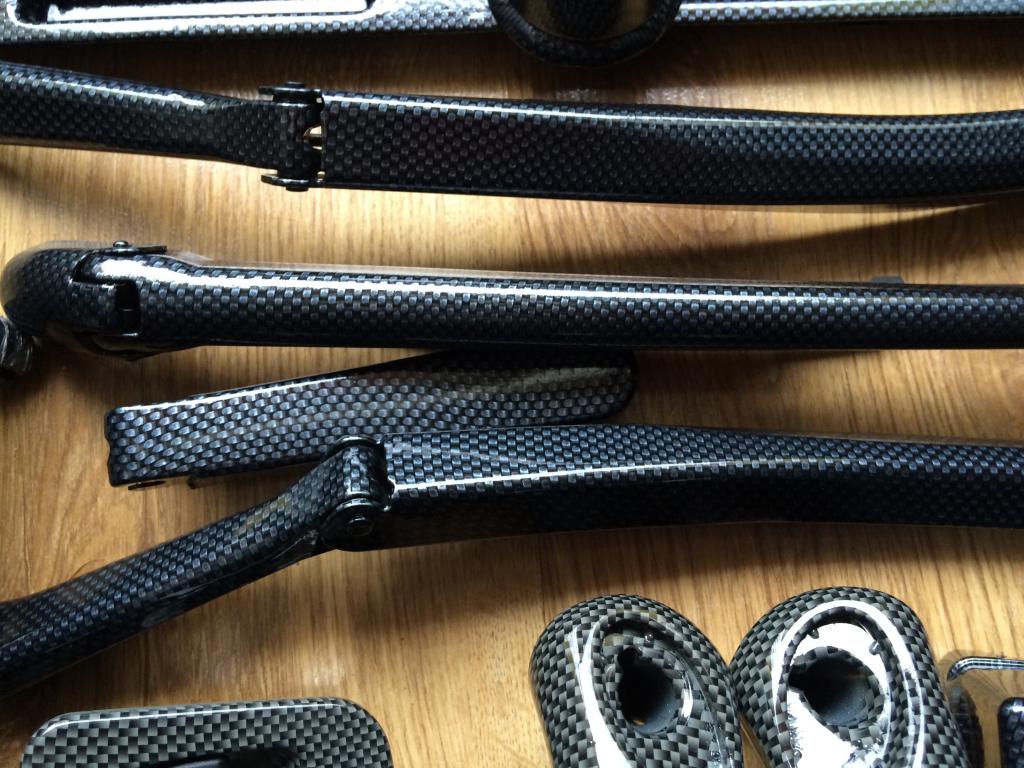 Ktoś pokazywał na forum, jak ma oklejone te rączki folią karbonową, nie wiem tylko jak to było robione bo sam bym coś takiego wykminił.