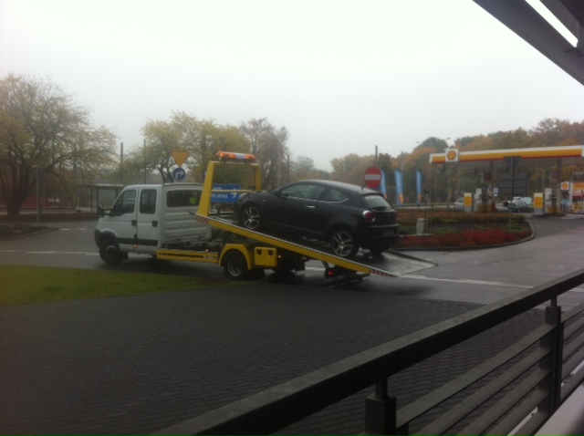 moj pierwszy post. Od stycznia jestem posiadaczem przepieknej Alfy MiTo. Auto nowe z salonu, przebieg 20.000. Dziś rano przy ruszaniu z parkingu usłyszałem niesamowity hałas z podwozia, przejechałem może 3 metry, auto staneło nie chciało ruszyć. Spojrzałem pod podwozie a tam zaczęła robić się ogromna plama oleju ze skrzyni. Laweta zawiozła moje auto do serwisu gdzie sie dowiedziałem że skrzynia wraz z mechanizmem różnicowym się rozpadły. DRAMAT!!!!!!!Przyczyna jeszcze nieznana,ale nie chce sie wierzyć, że taka awaria zdarzyła się po 9 miesiącach użytkowania auta! Do dzis byłem zachwycony tym autem. Dalej uważam je za rewelacyjny samochód ale niesamowicie się dziś zawiodłem. Na dole fota jak mi ją zabieraja:)