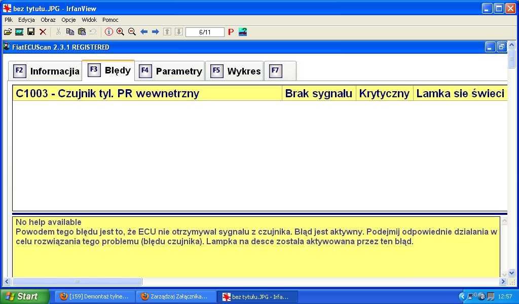 Używam programu fiatECUScan 2.3.1 w wersji zarejestrowanej. W zakładce (inne) -(Valeo parking control) określa który z czujników jest zepsuty.