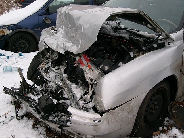 Mój przykład praktycznie czołowego zderzenia z autobusem PKS z tym, że auto się odbiło i odwróciło.