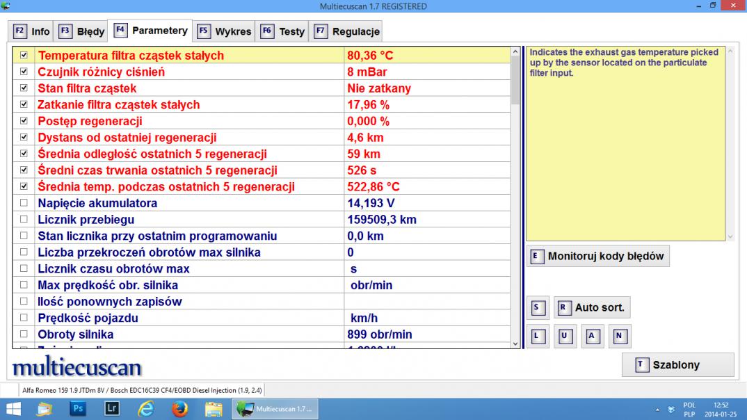 Wczoraj około godziny, 23 kiedy dojechałem do domu i wysiadłem z auta, żeby otworzyć garaż usłyszałem, że silnik pracuje nieco inaczej niż zwykle i dodatkowo falują obroty, co potwierdził również rzut oka na prędkościomierz. Początkowo przestraszyłem się, że to jakaś awaria, ale kiedy zauważyłem, że z rury wydechowej wydobywa się dym to domyśliłem się, że jest to proces wypalania dpf co dodatkowo potwierdziła wychylona wskazówka turbo i podwyższone spalanie. Zawróciłem, więc i wybrałem się na ok 10 minutową przejażdżkę po mieście aż do zakończenia procesu. Zaniepokoiło mnie, że podczas pracy na wolnych obrotach np. postój na światłach z rury wydechowej wydobywały się dosłownie ogromne kłęby dymu, czy to normalne? Czy może to efekt bardzo niskiej temperatury ok -16 stopni podczas wypalania? Dziś postanowiłem podłączyć alfę pod MES i sprawdzić parametry związane z DPFem . Oto, co zobaczyłem. Podejrzanie dziwna jest średnia odległość 5 ostatnich regeneracji- 59km. Czy jest to możliwe? Dodam, że przez ostanie 2 miesiące auto przejechało ok 1200km w następujący sposób: były to 4x dziennie trasy ok 4 km kiedy auto nawet nie zdążyło się rozgrzać, plus sporadycznie może ze 3 razy trasa ok 20 km. Dodam, że nawet nie wiedziałem że istniej coś takiego jak proces wypalania dpf ani nie wiedziałem jak go rozpoznać. Możliwe, więc że podczas tych 2 miesięcy auto wielokrotnie próbowało wypalić dpf jednak ze względu na bardzo krótkie odcinki zawsze wyłączałem w tym czasie silnik. Jednak kontrolka od dpf na desce nie zapaliła się ani razu. Czy tak krótkie trasy i fakt ze być może proces wypalania był często przerywany może wyjaśniać tą wartość 59 km? Dodam, że auto jeździ bardzo dobrze, nie czuć ubytku mocy ani żadnych innych niepokojących objawów. Pozdrawiam i dziękuję za pomoc.