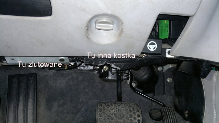 Ostatnio zlutowane były kabelki po odcięciu kostki i problem marchewki oraz braku reakcji na pedał gazu zniknął na 6 dni. Dzisiaj po wytelepaniu auta na wertepach problem znowu się pojawił i ja się już zastanawiam, czy może zlutowane było nie to, co trzeba, a przez tydzień był spokój przez przypadek. Poruszałem potem kablami, które są w termokurczkach i problem zniknął, po chwili znowu się pojawił. Ruszalem też przy okazji drugą kostką, która jest bardziej z prawej, przymocowana za dźwignią regulacji kierownicy. Ta kostka, którą zrobiłem ostatnio jest bardziej z lewej. Na zdjęciach widać tą kostkę za dźwignią i te kable, które już zrobiłem. Proszę o określenie, która jest od gazu i czy jeżeli znowu mi wywala błąd, to znaczy że coś źle zlutowane, czy znowu szukać czegoś nowego... Zwariować można.