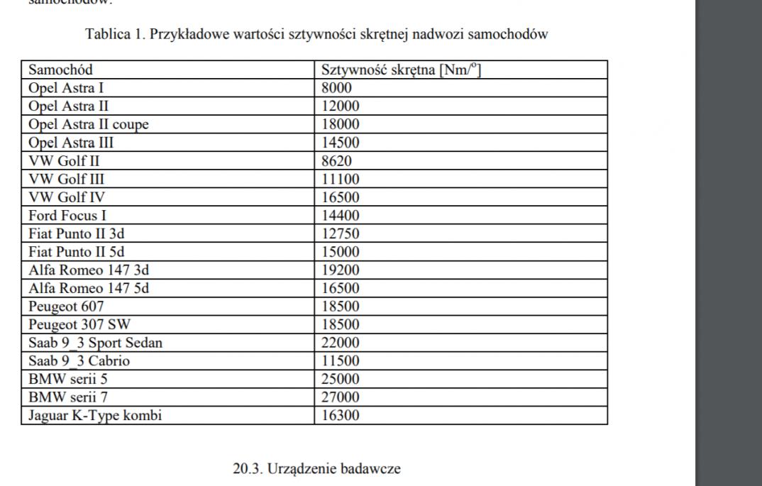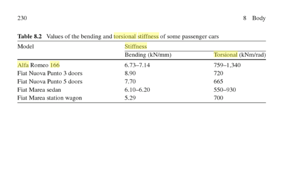 Znalazłem ciekawe dane a propos sztywności skrętnej alfy 166