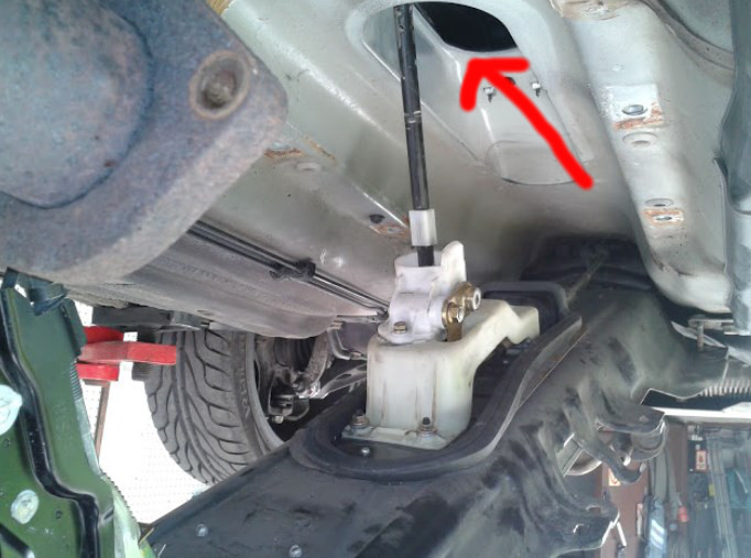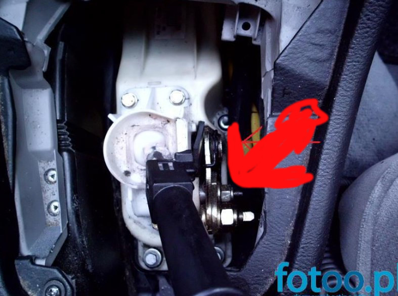 Wiem, że trzeba to wymontować od spodu, ale mam inny problem, w jaki sposób odkręcić śrubę zaznaczoną na zdjęciach? O ile jest to śruba, bo kiedy chcę ją odkręcić to okręca się całość w tej dziurze(tuleja?). Nie idzie odkręcić tej nakrętki. Jak to wymontować?