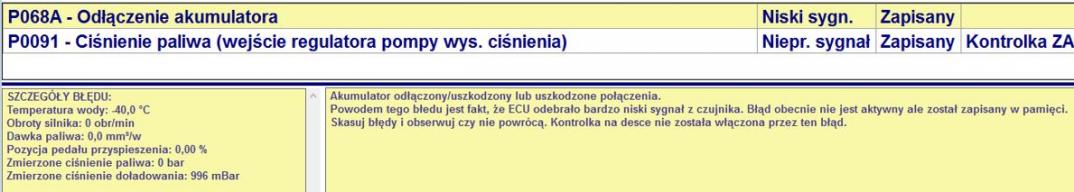 W tym przypadku mialem dwa bledy - P0091 i P068A. U mnie sterownik byl brany na stol.