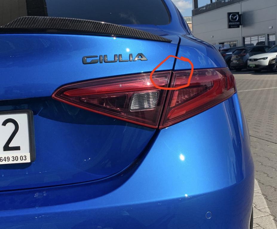 - Złe spasowanie klapy bagażnika względem błotnika po stronie prawej (widoczne na łączeniu elementów lampy)