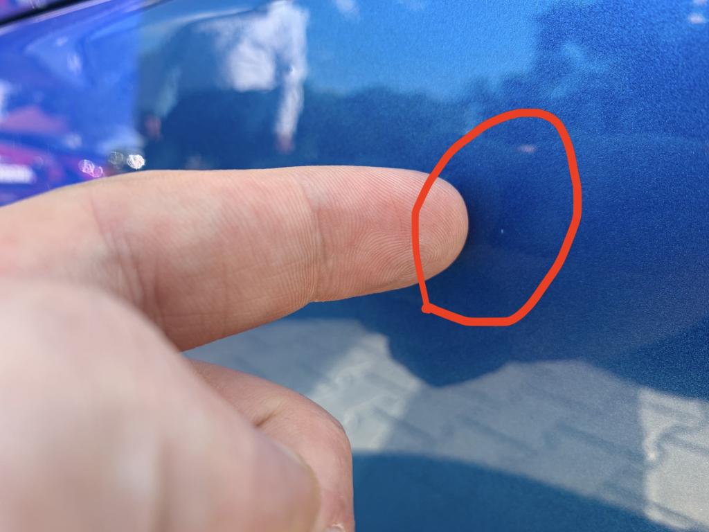- Uszkodzona świeża powłoka lakiernicza na klapie bagażnika (w postaci rysy)